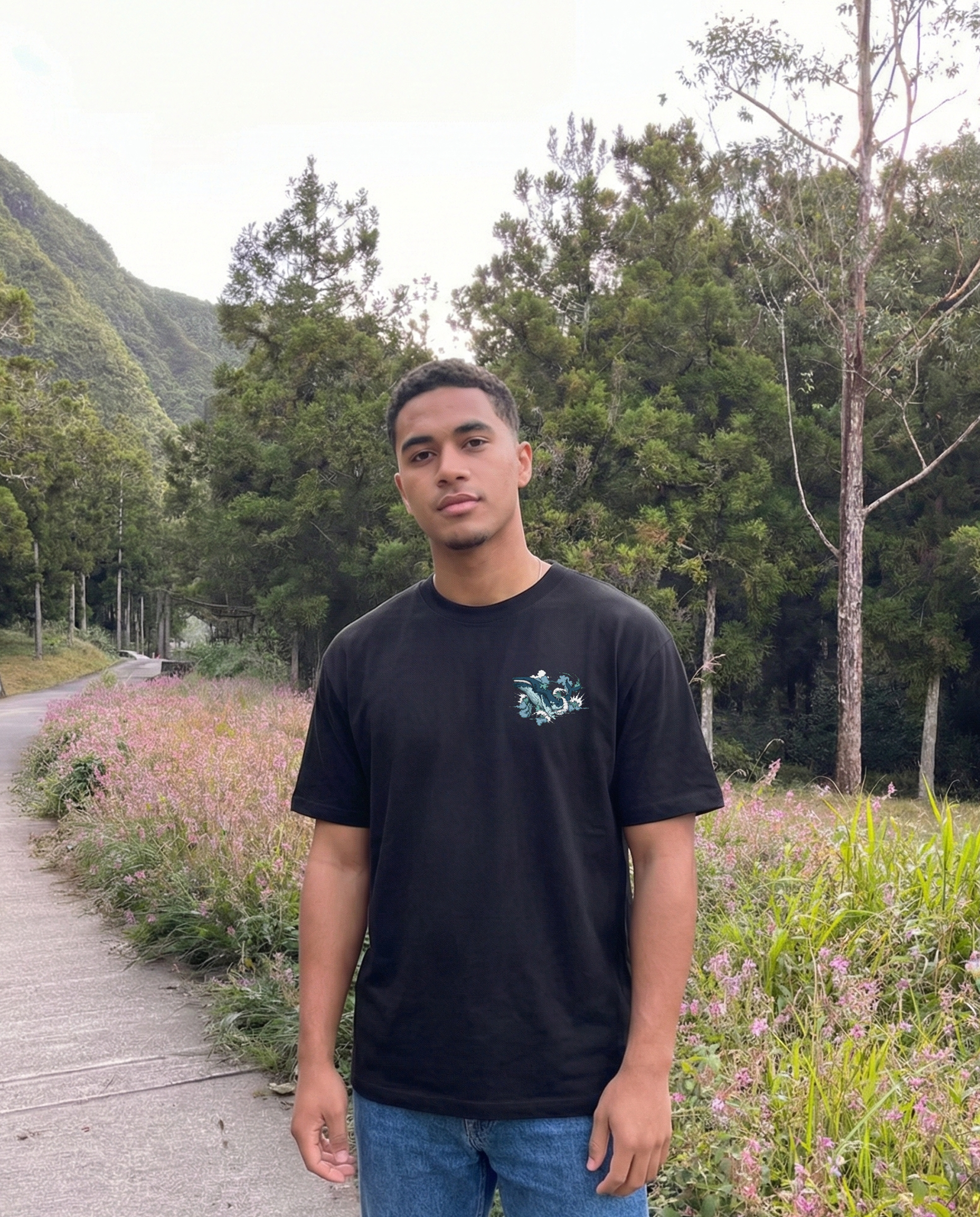 T-shirts oversize 260g inspirés de La Réunion, illustrés dans un style rétro/texturé.
